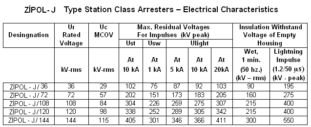 Note: If the required arrester's rated voltage is different than Ur values on the above list, please consult DİSAŞ.