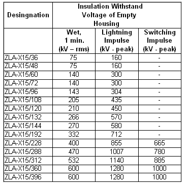 A proven internal heat transfer scheme ensures long term thermal stabilitiy of the arrester. A solid alignment system of blocks provides robustness and enhances reliability. Their large modular units make the ZLA-X15 surge arresters suitable for use in regions subject to a high degree of atmospheric pollution. The active parts of ZLA-X15 arresrters are embedded in a hermetically sealed housing of high strength porcelain, which has sheds of a high dielectric strength and is filled with nitrogen. High strength heavy duty flanges with their gas diverter nozzles are made of a weather resistant light alloy and are cemented to the housing. Furthermore, flanges are fixed to the housing by means of corrosion-resistant clamps. Sealing rings of weather proof and ozone resistant rubber and non-corrosive metal diaphragms ensure perfect sealing over years.