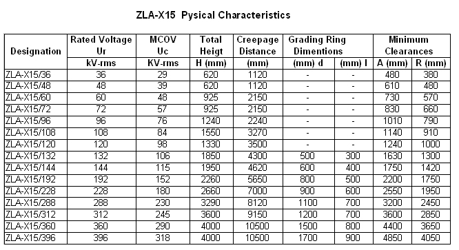 The ZLA-X15 surge arresters are rated in accordance with their rated voltages and their maximum continuous operating voltages (MCOV) applied across their terminals in service. These arresters can be applied where the maximum line to ground voltage at the arresters location is less than or equal to the MCOV of the arrester.